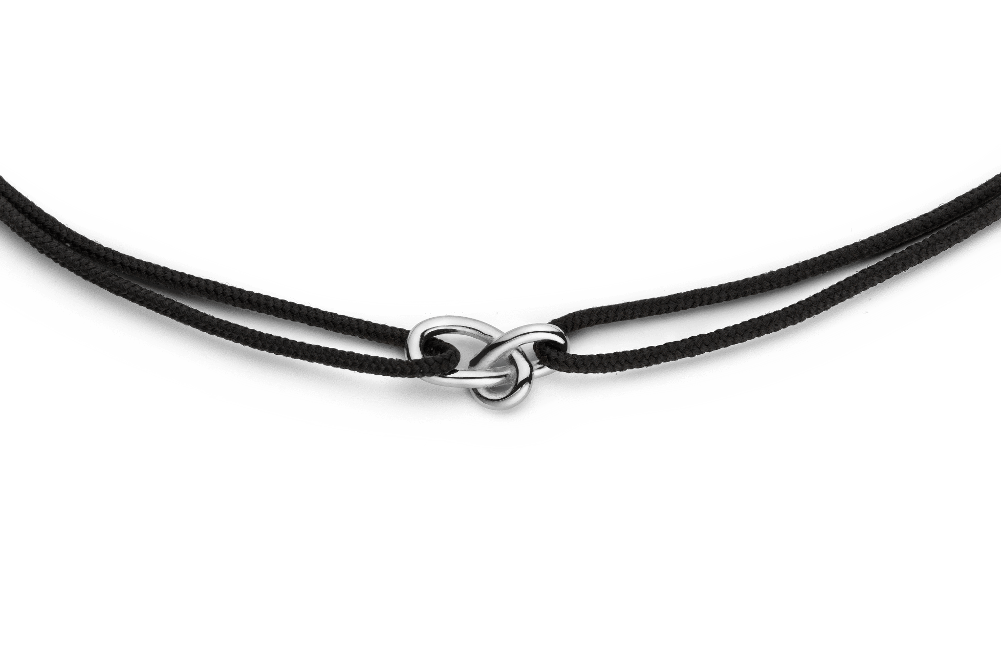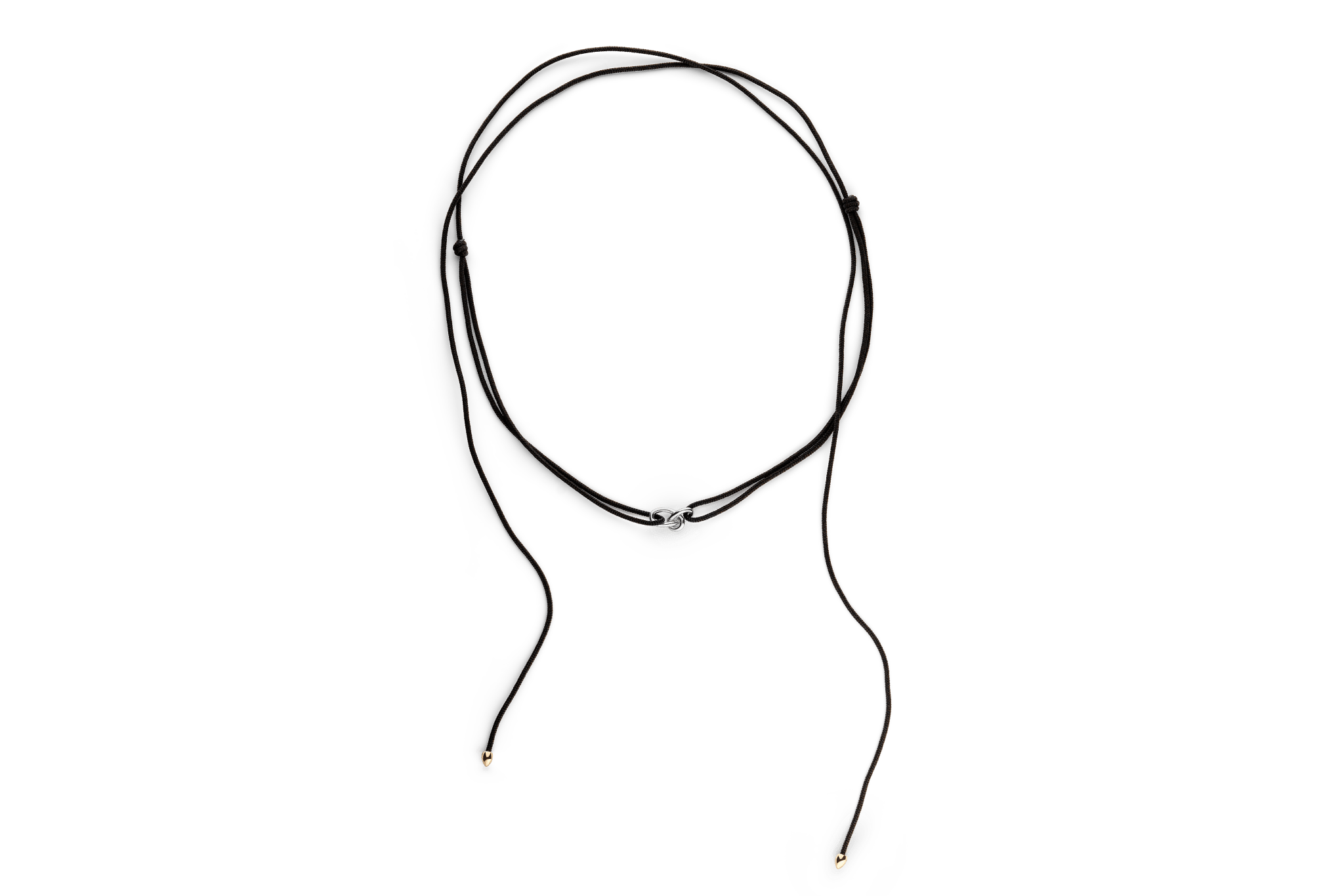 This necklace showcases a delicate knot pendant secured at its center, crafted in