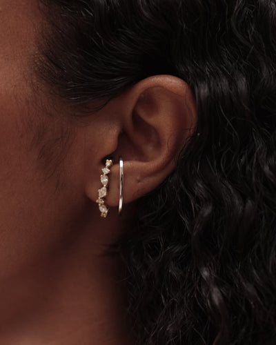 A radiant cluster of seven diamonds dances along the earlobe, creating a sparkling illusion of movement. Handcrafted in 14K recycled solid gold, it captures light from every angle - an enchanting design made for lifelong wear.