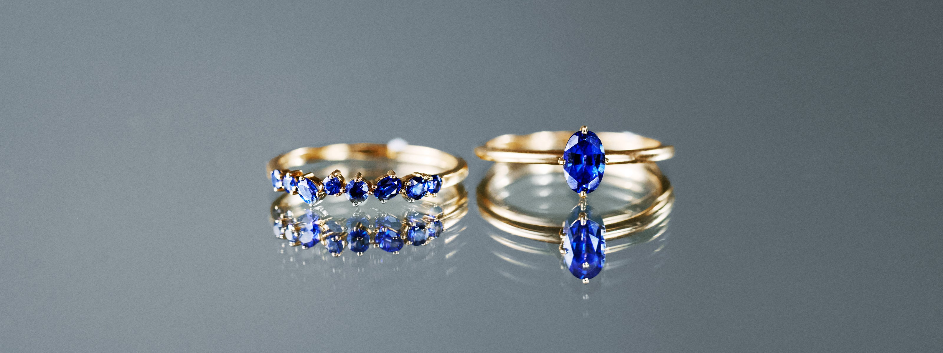 A constellation of 8 velvety lab-grown sapphires brought together in a radiant 14K solid gold setting. This luminous cluster band adds a rich pop of color to any look, equally enchanting worn on its own or styled into your signature stack with effortless sophistication.