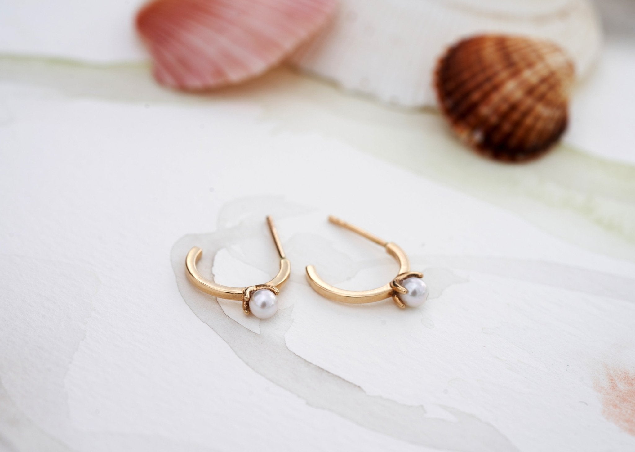A gold huggie with a pop of pearl. Your new way to wear a single pearl, the best of two worlds collide. Trendy and classic at the same time.