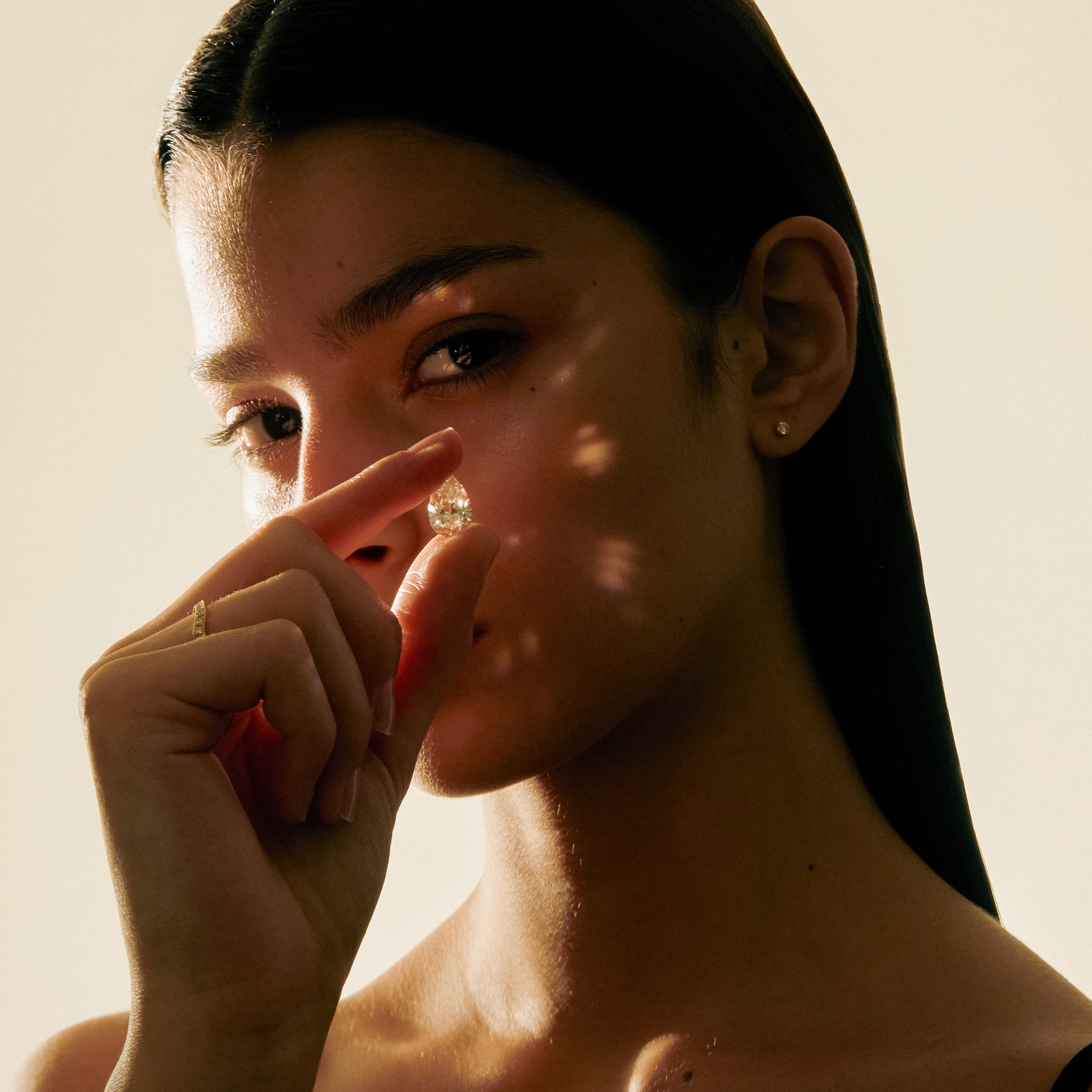 Wir verwenden nur im Labor gezüchtete Diamanten, weil sie im Vergleich zu geförderten Diamanten erhebliche Umweltvorteile bieten. Die Idee ist vergleichbar mit der, einen Baum in einem Gewächshaus zu pflanzen, anstatt ihn im Wald zu fällen. Immer noch echt, nur bewusster.