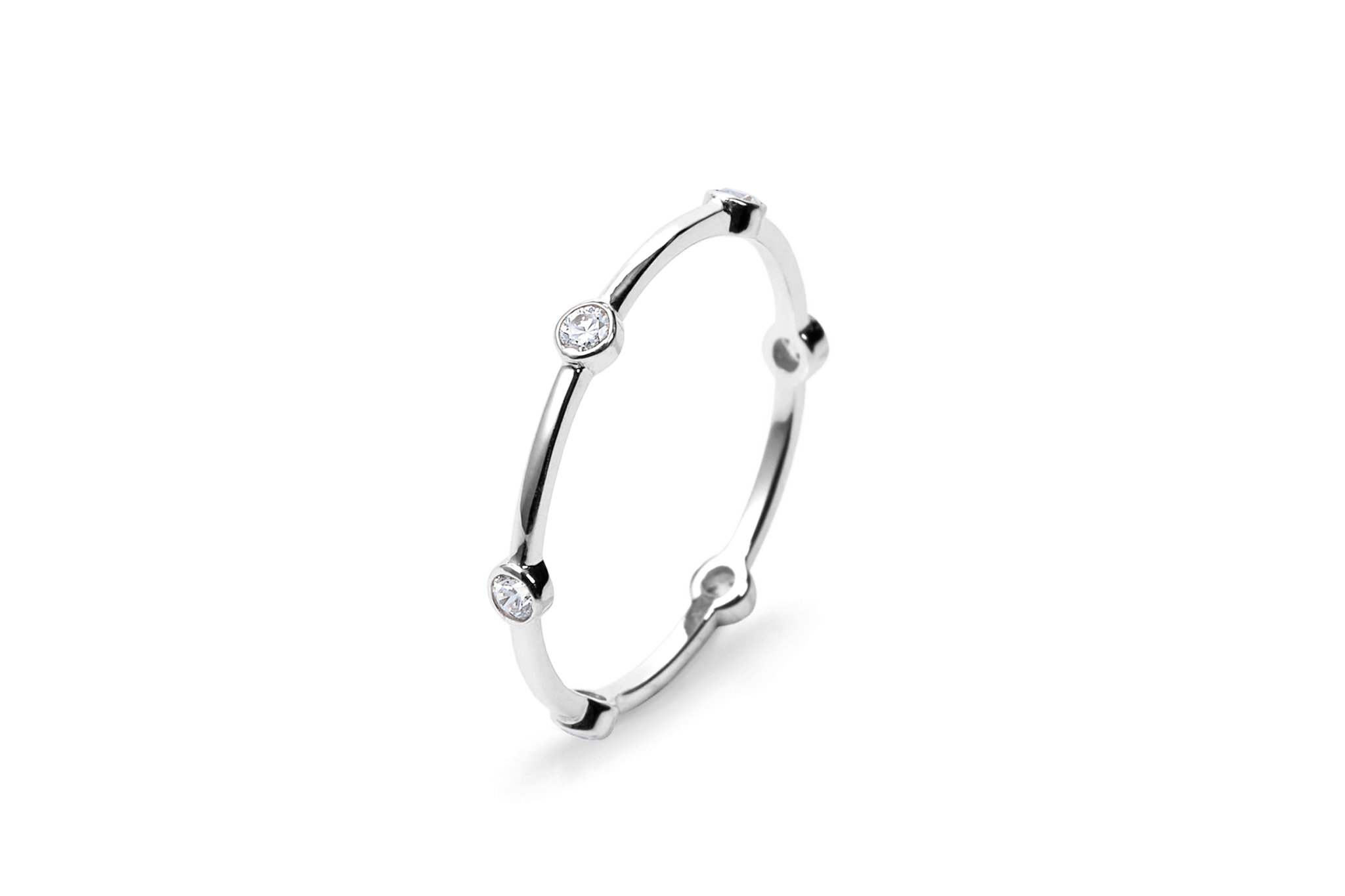 Dieser zarte Ring sorgt für das perfekte Funkeln, um deinen Look aufzuwerten. Der Six Diamond Band funkelt mit sechs einzelnen weißen Diamanten, die entlang eines Bandes mit einer zarten Goldverbindung angeordnet sind. Er lässt sich perfekt mit dem Station Diamond Bracelet kombinieren.