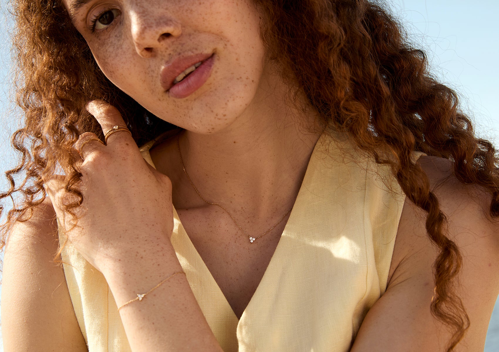Alle unsere Schmuckstücke sind aus 100 % recyceltem, massivem Gold, nicht plattiert oder gefüllt. Deshalb werden unsere Stücke nicht oxidieren oder sich verfärben. Stattdessen halten sie ewig und werden an die nächste Generation weitergegeben.