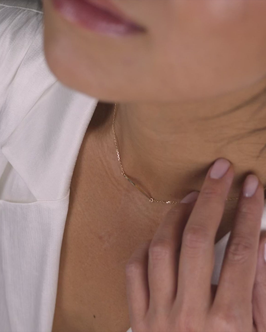 Diese verführerisch um 90 Grad gedrehte minimalistische Barren-Halskette ist eine inspirierende Ergänzung für deinen Alltagslook. Sie ist mit einer feinen Kette verbunden und besteht komplett aus zertifiziertem Gold. Trage sie allein oder zusammen mit einer Halskette anderer Länge.