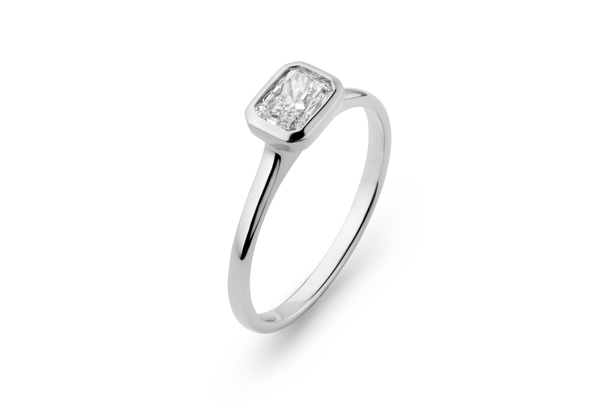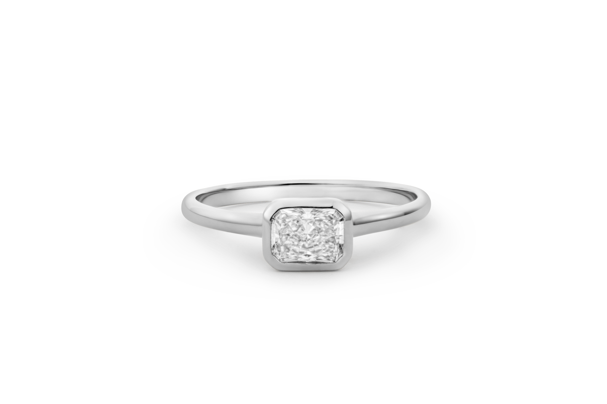 Dieser Ring präsentiert einen einzelnen 0,5 ct im Labor gezüchteten Radiant-Diamanten in einer eleganten Ost-West-Fassung. Markant und dennoch raffiniert, ist er eine herausragende Wahl für alle, die modernes Design mit zeitloser Eleganz schätzen.
