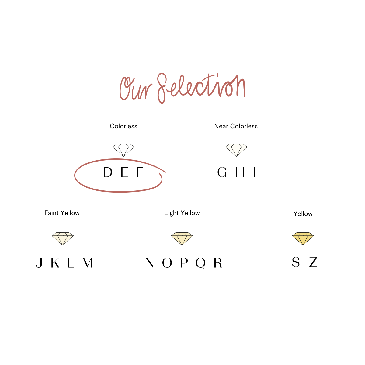 Diamanten werden auf einer Farbskala von D (farblos) bis Z (hellgelb) eingestuft, die die Tönung des Diamanten beschreibt. Die Farbe wirkt sich direkt auf das Aussehen des Diamanten aus. Je farbloser ein Diamant ist, desto seltener und wertvoller ist er.