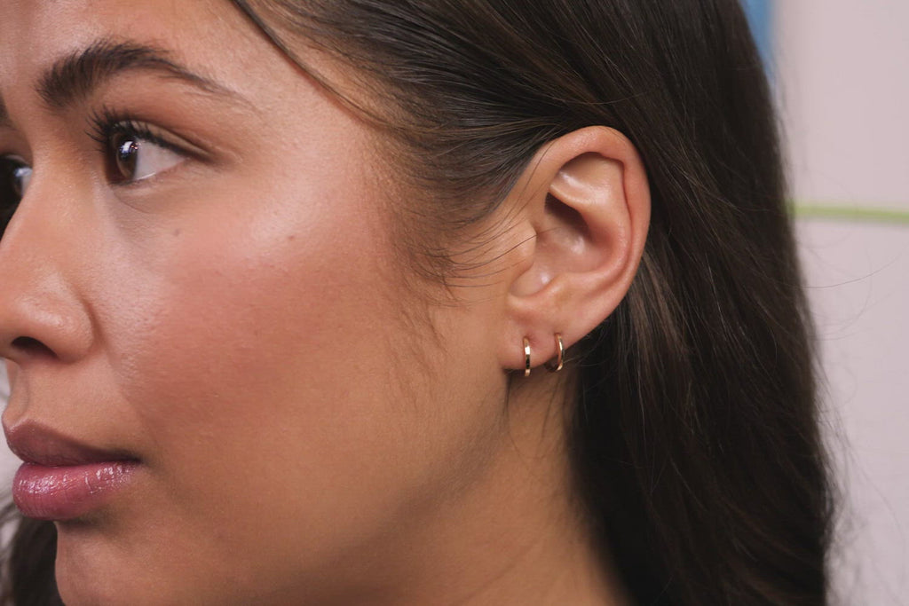 These hoops are minimalistic, yet they make a bold statement. Snug, contemporary, and takes an elegant effect when added to any studs. Handcrafted in gold, so you can hold on to them forever.
