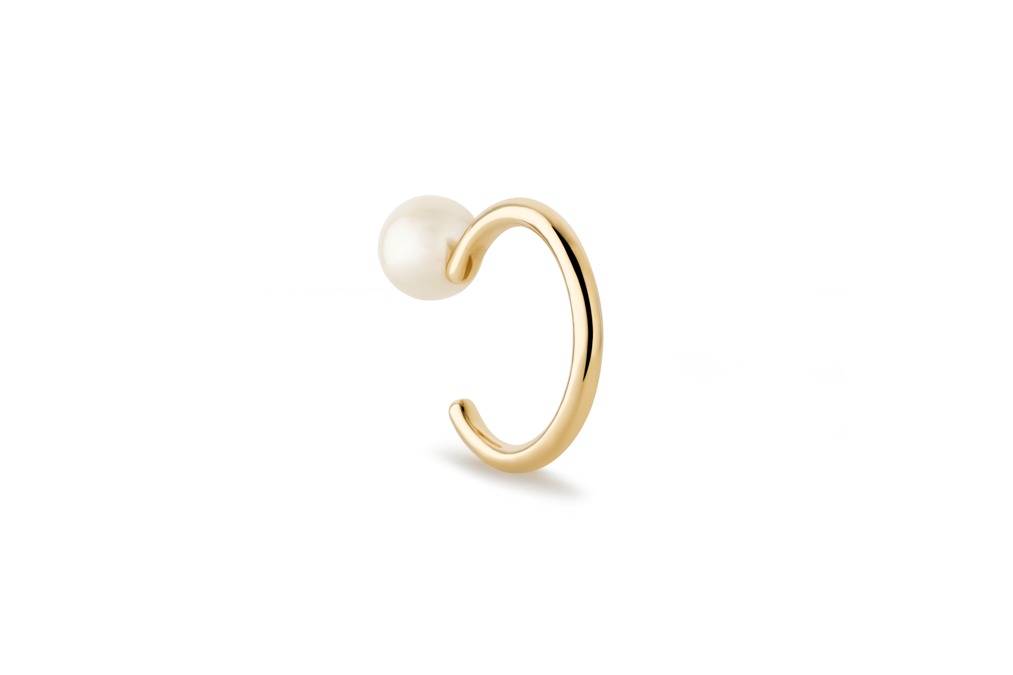 The Single Pearl Ear Cuff features a sleek gold design distinguished with a single Japanese Akoya pearl placed on the inside of the ear. This cuff is both simple and unique, bringing a fresh touch to your ear stack.